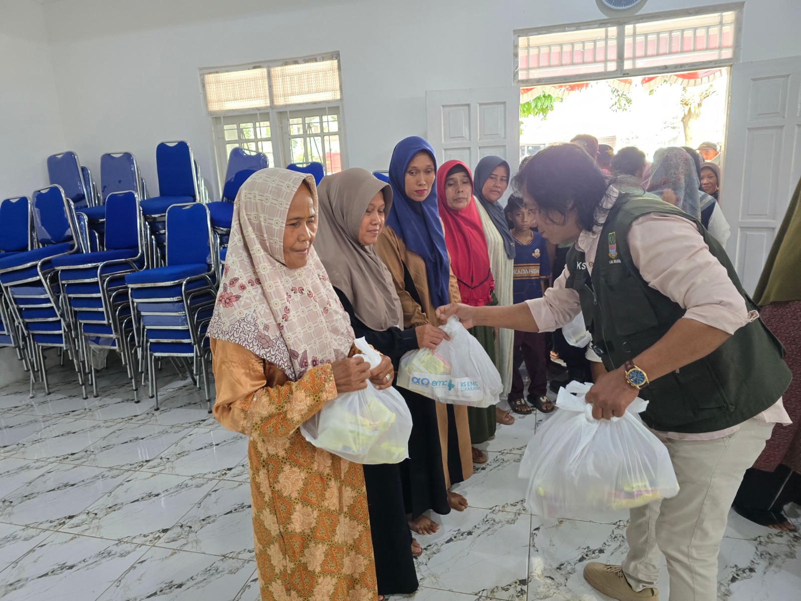 In addition to distributing basic food supplies, the event also included a brief health education session and blood pressure checks by the EMC Cikarang Hospital medical team. This demonstrates support so that the community not only receives basic necessities but also receives knowledge and attention regarding their health.